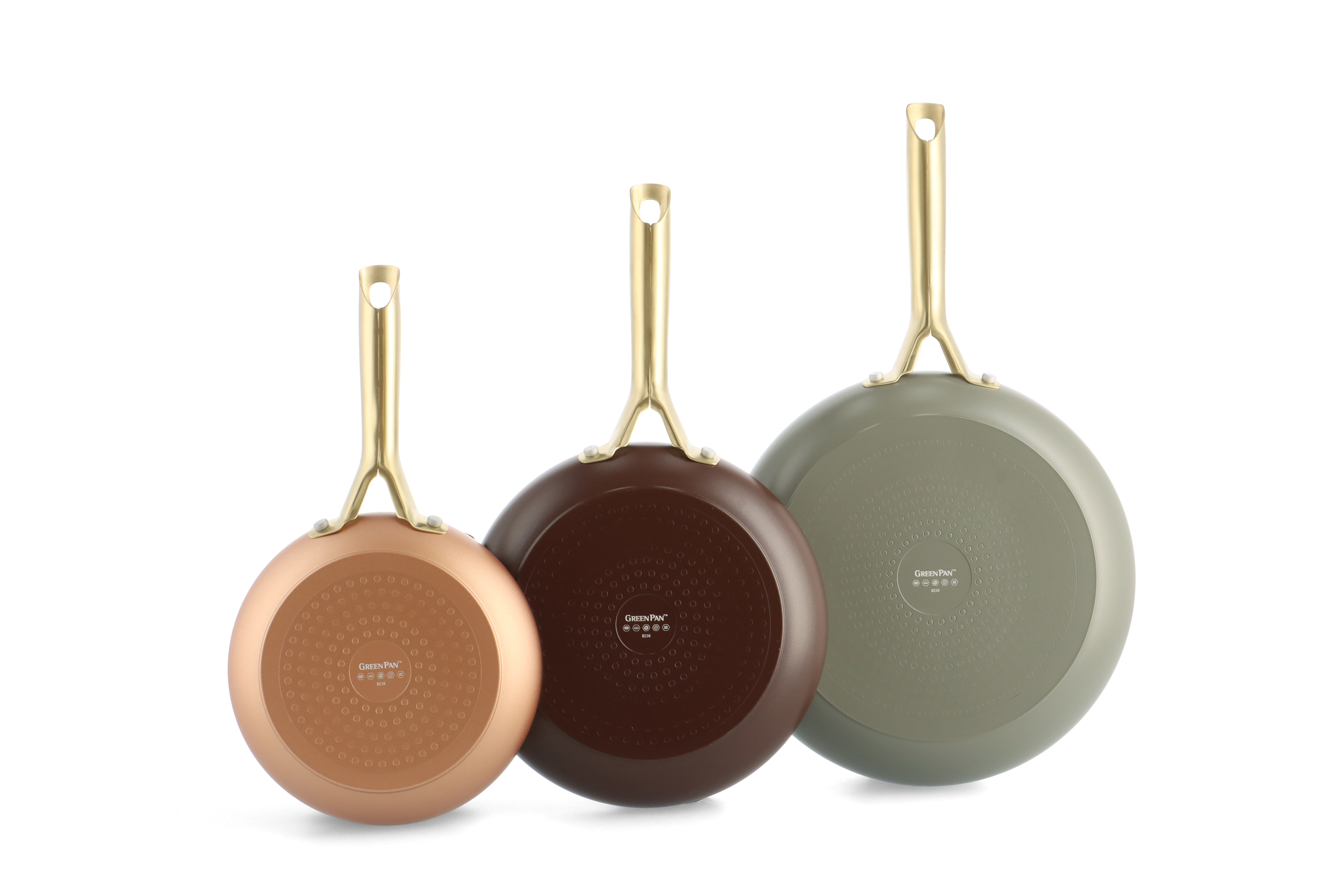De pannen zijn gemaakt van 100% gerecycleerd aluminium met de kenmerkende PFAS-vrije keramische antiaanbaklaag van GreenPan. Een geperforeerde inductiebodem zorgt voor een gelijkmatige verwarming en is bestand tegen de dagelijkse eisen. De crèmekleurige binnenkant en champagnekleurige handgreep vullen het ontwerp prachtig aan. De pannen zijn gemakkelijk schoon te vegen of je kunt ze in de vaatwasser stoppen voor moeilijke klusjes. Ze kunnen ook in de oven tot 200°C.